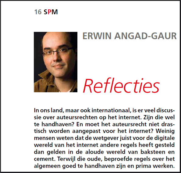 Erwin Angad-Gaur, 'Reflecties' in Sena Performers Magazine, 2012, p.16-17 (met toestemming).