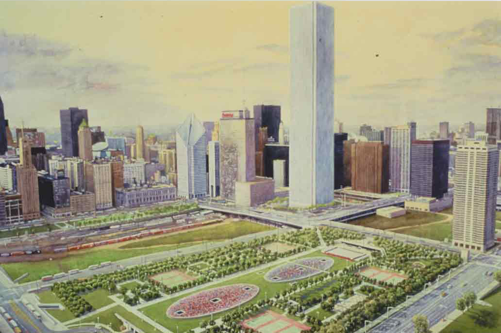 Afbeelding van CHAPMAN KELLEY Wildflower Works, 1984-2004, original watercolor painting used in an early proposal for the site-specific installation in Chicago’s Grant Park. Courtesy the artist.