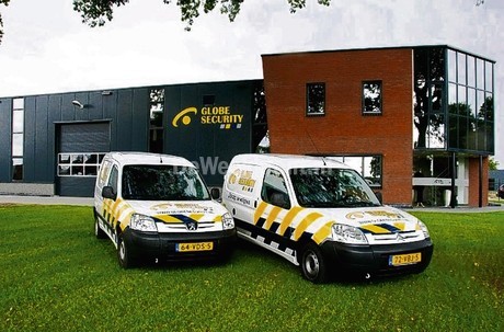 Auteursrecht op striping. De staat heeft in 1992 een extern bureau opdracht gegeven om een huisstijl te ontwerpen. De auteursrechten zijn onder voorbehoud ex 15b Auteurswet (door of vanwege de openbare macht) overgedragen aan de staat. Globe Holding heeft voor haar beveiligingsbedrijf striping aangebracht op haar vervoersmiddelen in de kleuren blauw en geel. Zij heeft daarbij afwijkende kleuren gebruikt en bovendien staat haar bedrijfslogo op de achterkant en de zijkanten.