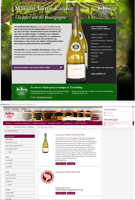 Jos Beeres heeft de domeinnaam louislatour.nl geregistreerd en gebruikt deze om wijnen van het merk Louis Latour aan te bieden. Als er op de link wordt geklikt, wordt men doorverwezen naar josbeeres.nl, waar men ook andere merken aan kan schaffen.