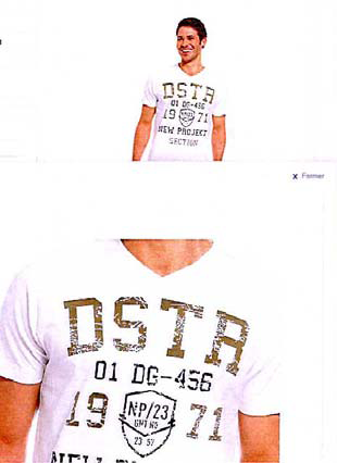 (kledingstuk vi , r.o. 4.12) (...) Twijfel over de vraag of het teken afgebeeld op kledingstuk (vi) onder het gebod valt, bestaat naar voorlopig oordeel niet. Bij het daarop afgebeelde teken, weergegeven in schrijfletter, is een duidelijke afstand waarneembaar tussen de letter ‘D’ en de letters ‘str’.
