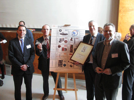 De officiële uitreiking van het eerste postzegelvel was tevens de aftrap voor de festiviteiten rond het jubileumjaar van de Rijksoctrooiwet; die bestaat in 2010 maar liefst 100 jaar.