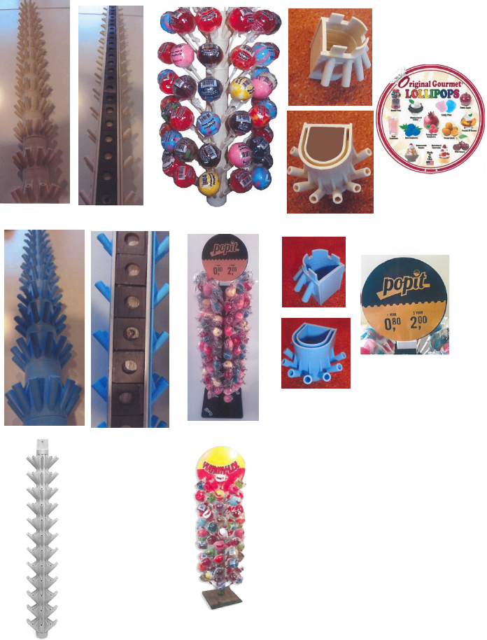 Geen slaafse nabootsing displays [klik afbeelding voor vergroting]. OG is produceert en verhandeld ronde lolly's van een bovengemiddeld formaat; ze gebruikt daarvoor lollydisplay. CD zoekt contact voor een samenwerking en krijgt inzage in roadmap to succes. Sinds december biedt CD haar producten via o.a. winkels van Jamin aan. De lollydisplays van beide partijen zijn vrijwel identiek. Niet aannemelijk dat de displays waar de lolly’s worden ingestoken zorgen voor verwarring bij het publiek. Dat publiek koopt lolly’s en geen displays en zal in de eerste plaats geïnteresseerd zijn in de lolly’s en niet in de (vormgeving van) de displays. Slaafse nabootsing lolly’s niet aan vordering ten grondslag gelegd. Vorderingen worden afgewezen.